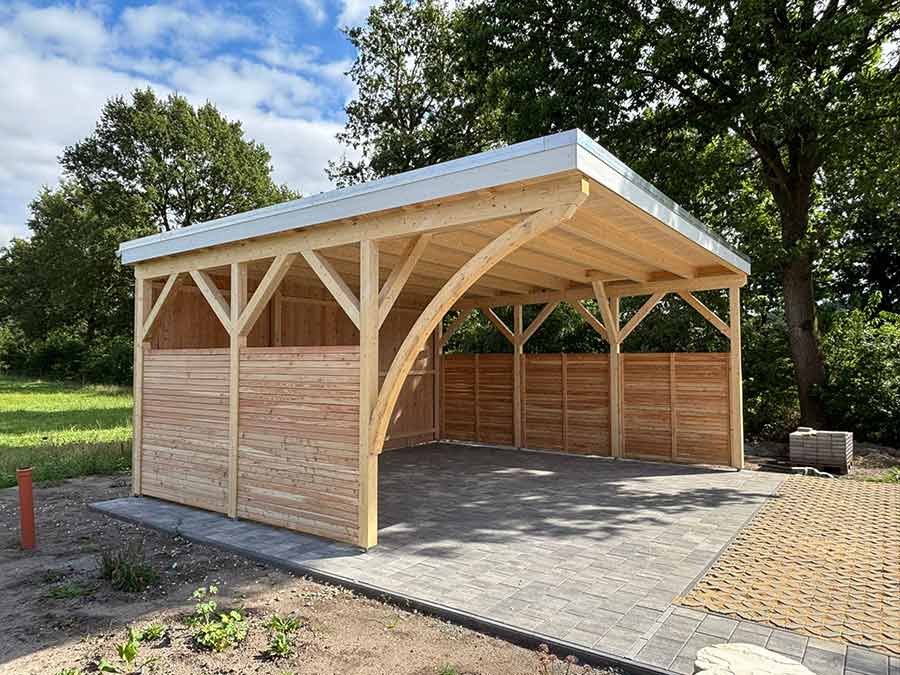 Carports lassen sich bestens im Holzbau erreichten. Gegenüber einer Garage bieten sie eine gute Belüftung, so dass das Fahrzeug bei Regen sehr gut abtrocknet, und lassen sich wesentlich preiswerter aufstellen. Trotzdem ist das Auto vor Wind und Wetter geschützt, so dass auch im Winter die Scheiben nicht vereist sind.
